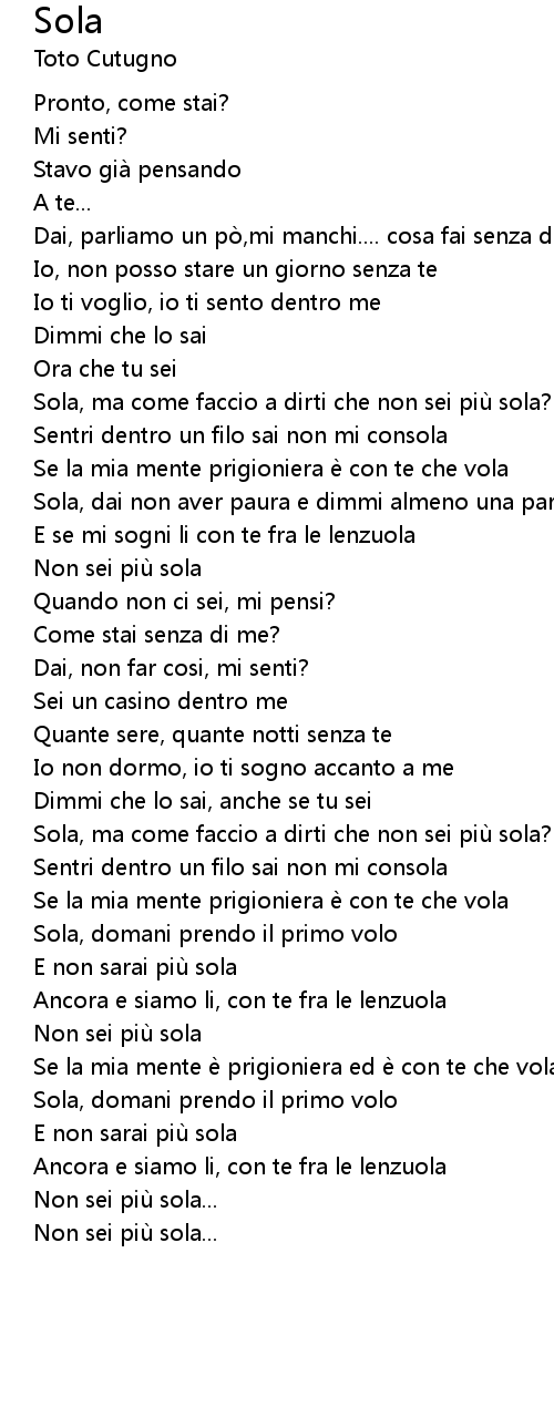 | Sola, ma come faccio a dirti che non sei piu sola? | |