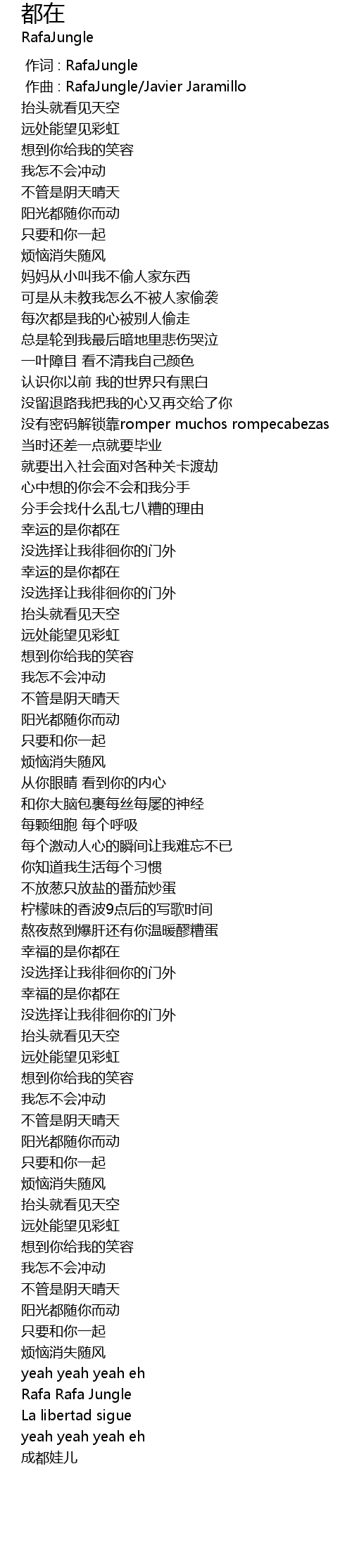 | [00:00.000] | 作词 : RafaJungle |
