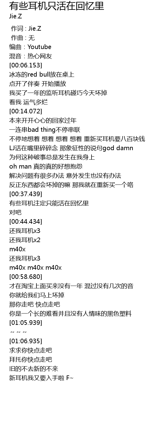 | [00:37.681] | 有些耳机注定只能活在回忆里 |