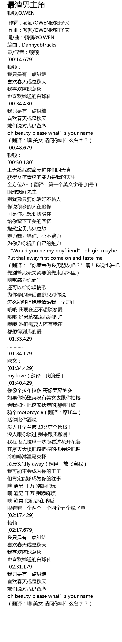| [00:00.000] | 作词 : 顿顿/OWEN欧阳子文 |