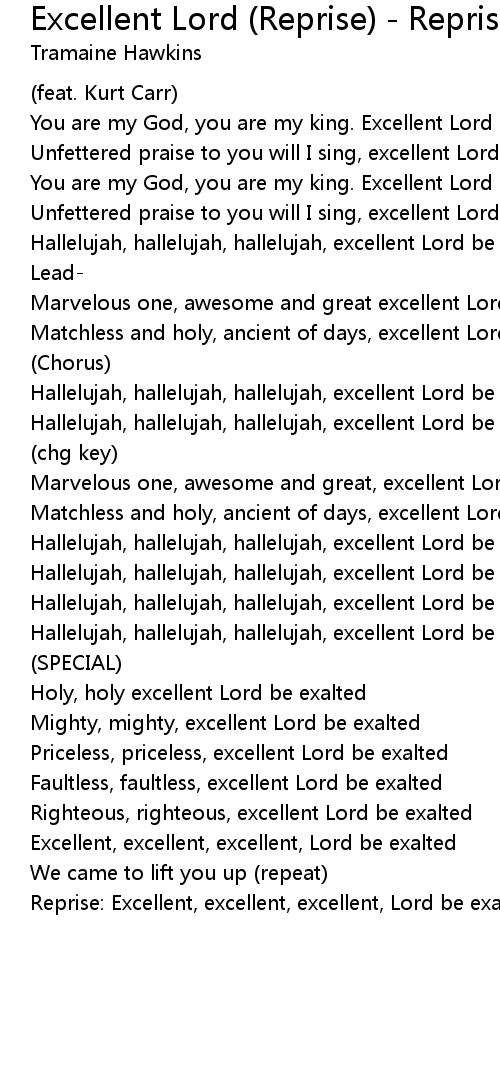 Reprise: Excellent, excellent, excellent, Lord be exalted |