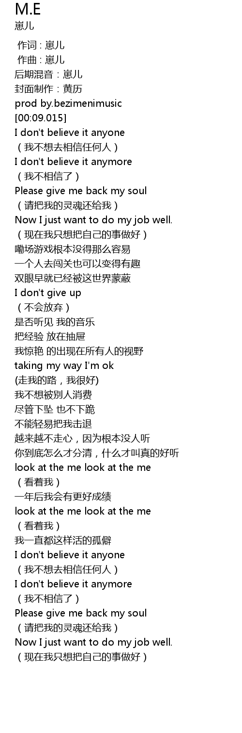 | [00:13.027] | I don't believe it anyone |