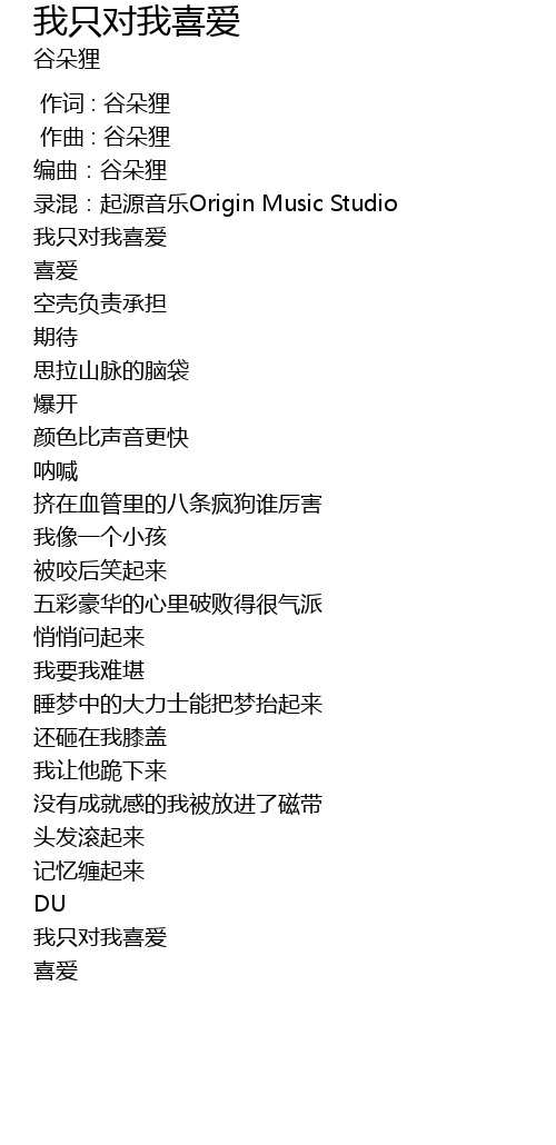 | [00:20.681] | wǒ zhǐ duì wǒ xǐ ài |