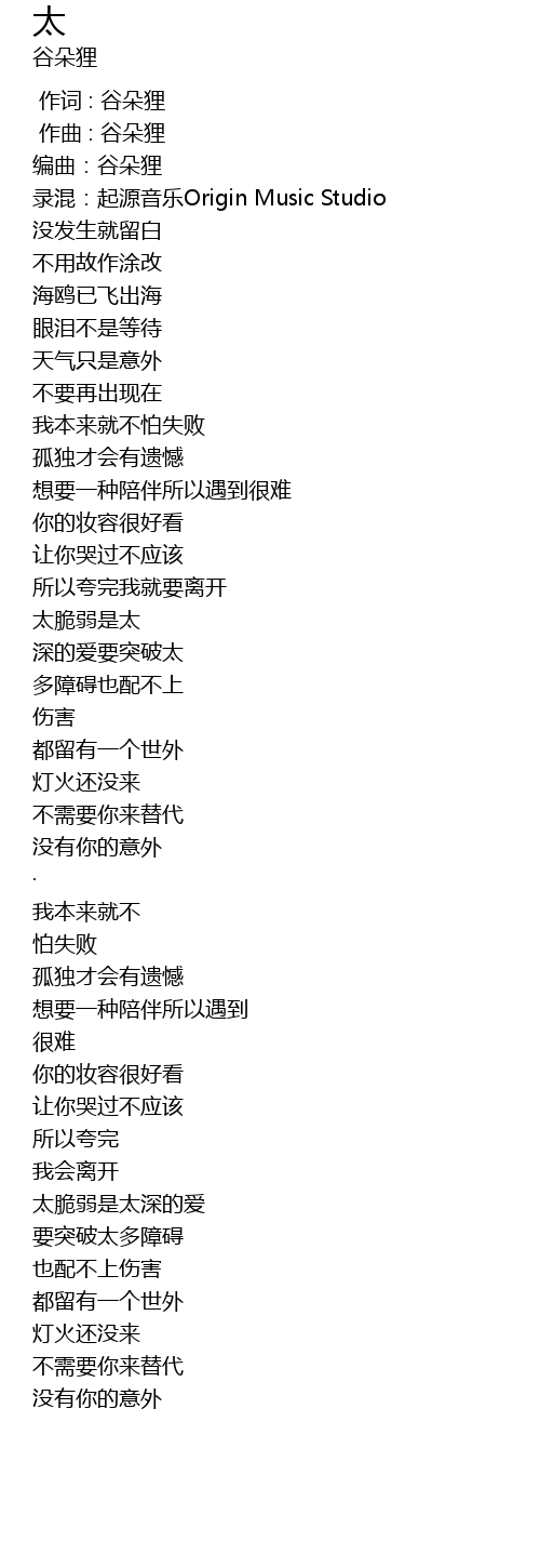 | [00:01.000] | 作曲 : 谷朵狸 |