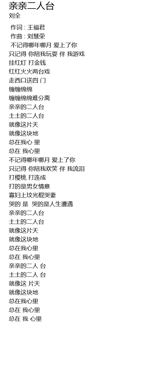 | [02:59.94] | tǔ tǔ de èr rén tái |