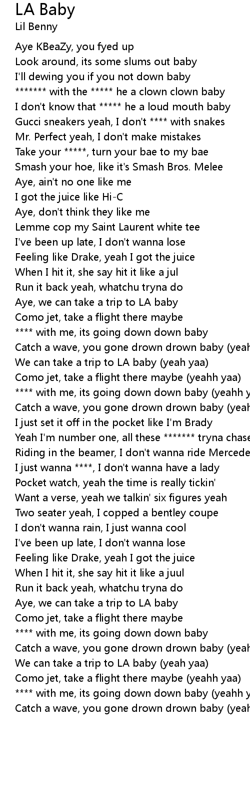 | [00:14.97] | ******* with the ***** he a clown clown baby |