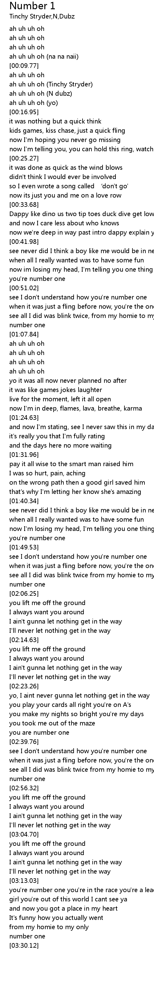 | [00:13.61] | ah uh uh oh N dubz |