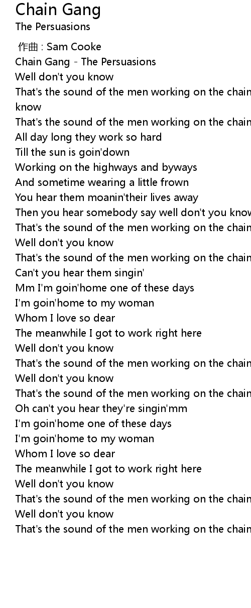| [00:00.10] | Chain Gang The Persuasions |