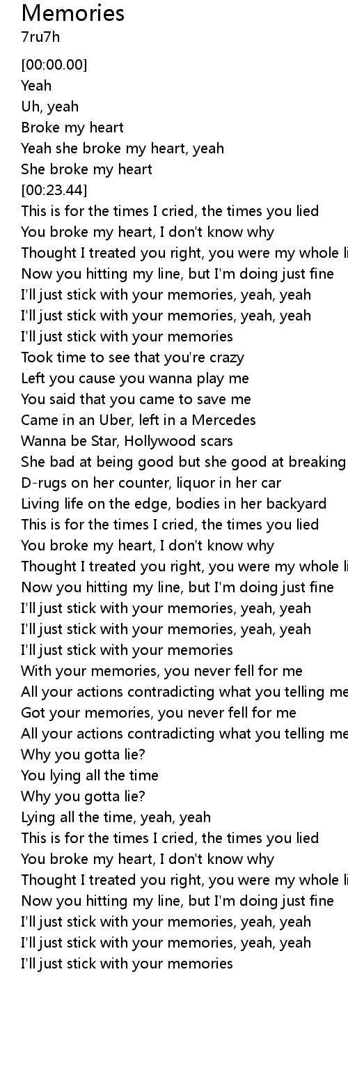 | [00:38.08] | I'll just stick with your memories, yeah, yeah |