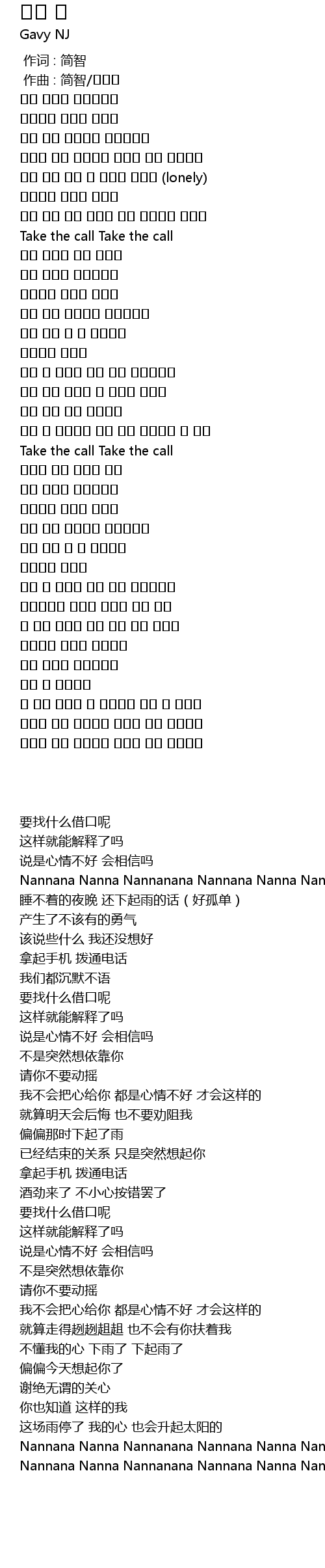| [02:03.066] | Take the call Take the call |