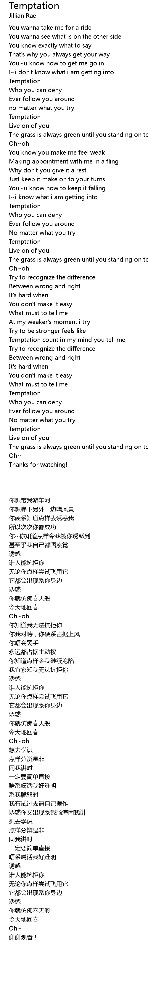 Temptation Lyrics