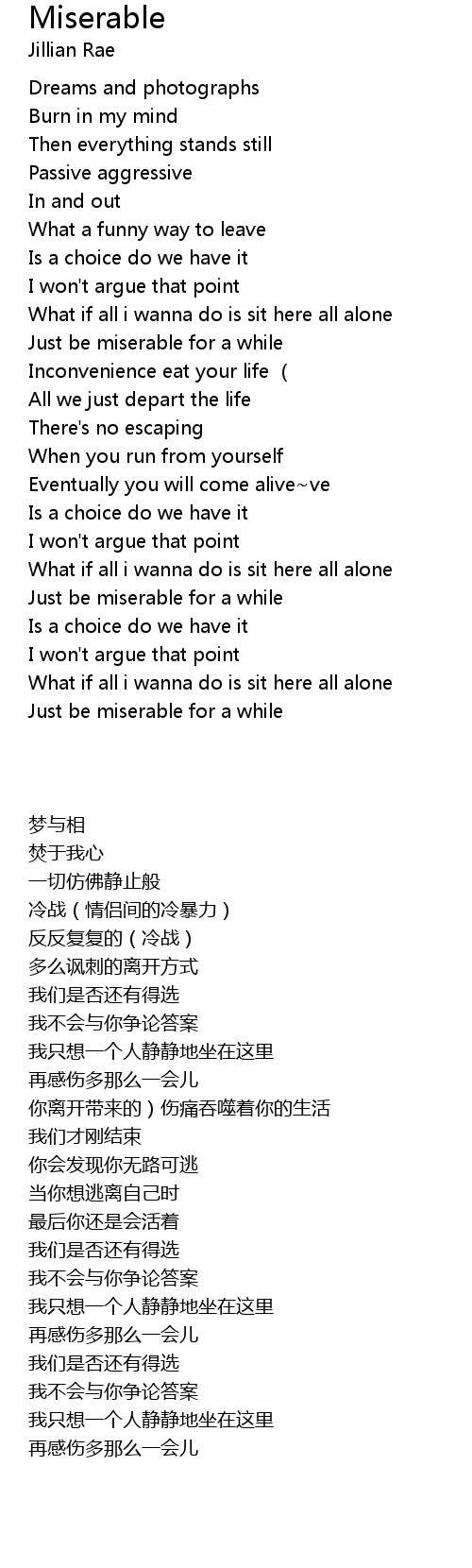 | [02:04.49] | Just be miserable for a while |