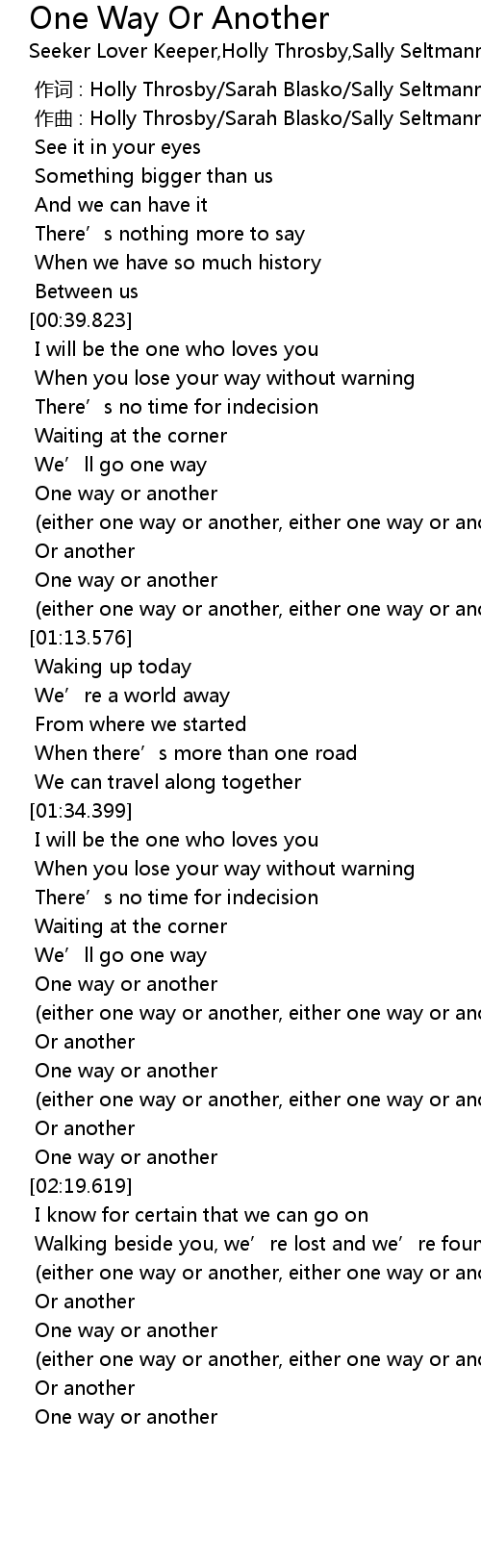 | [00:00.000] | zuò cí : Holly Throsby Sarah Blasko Sally Seltmann |
