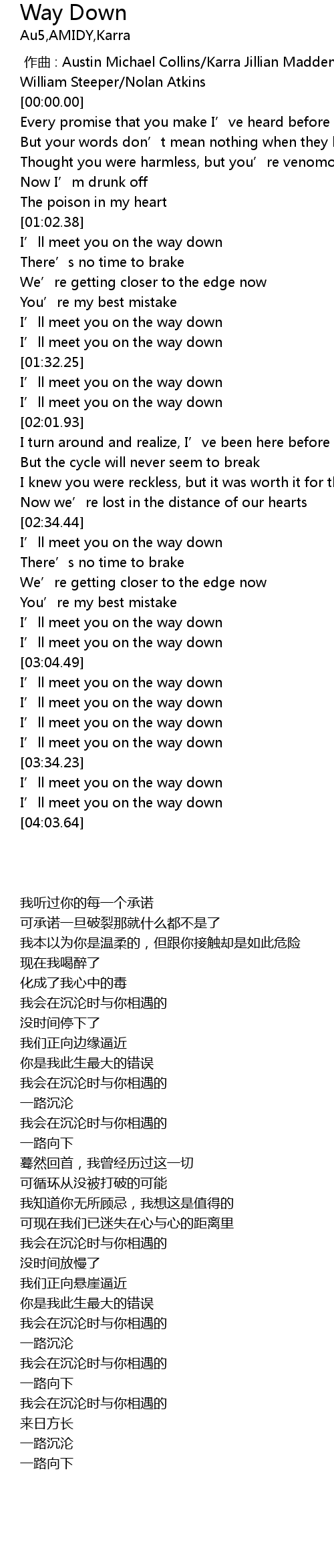 | [03:23.92] | I' ll meet you on the way down |