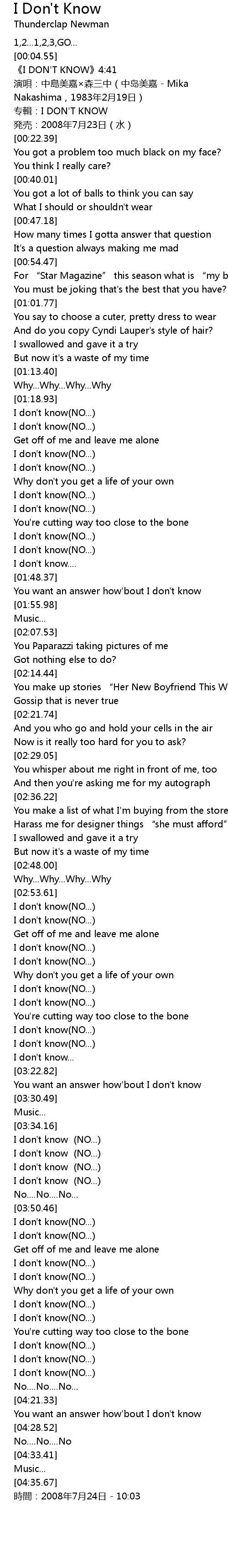 | [03:25.50] | You want an answer how' bout I don' t know |