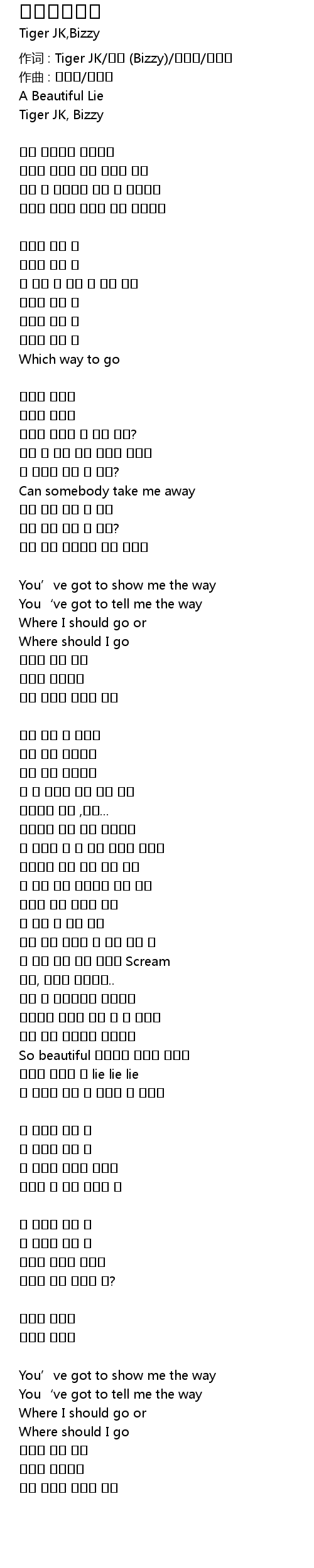 作词 : Tiger JK/비지 (Bizzy)/남혜승/박진호 |