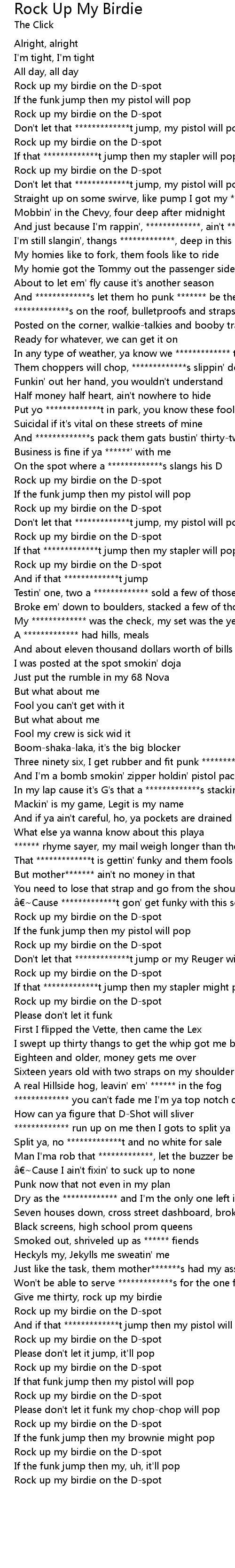 | Man I'ma rob that *************, let the buzzer be the bell | |