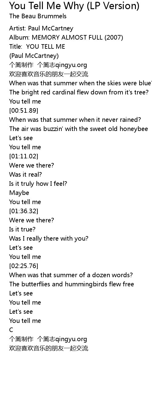 | [03:07.62] | 个篱制作 个篱志qingyu.org |