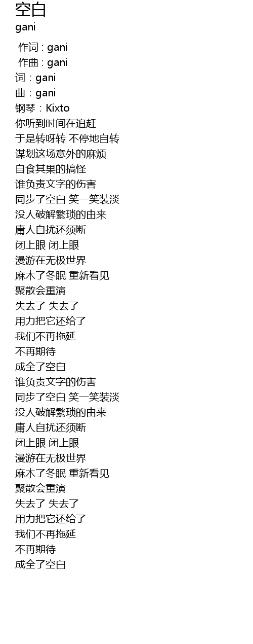 | [01:42.38] | 同步了空白 笑一笑装淡 |