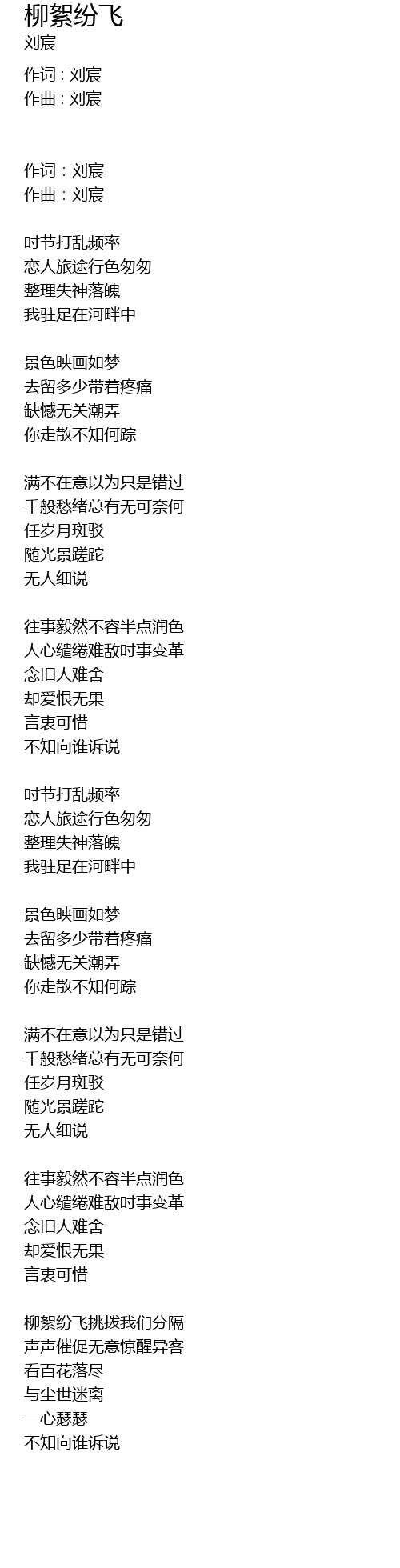 | 柳絮纷飞挑拨我们分隔 | |