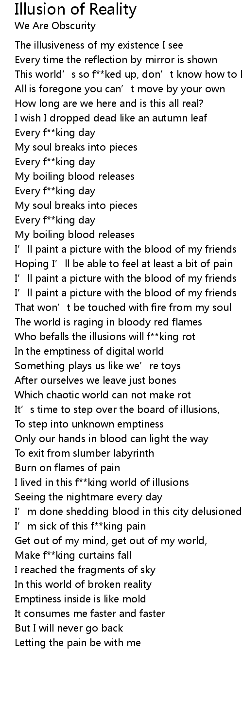 | [01:35.68] | Who befalls the illusions will f**king rot |