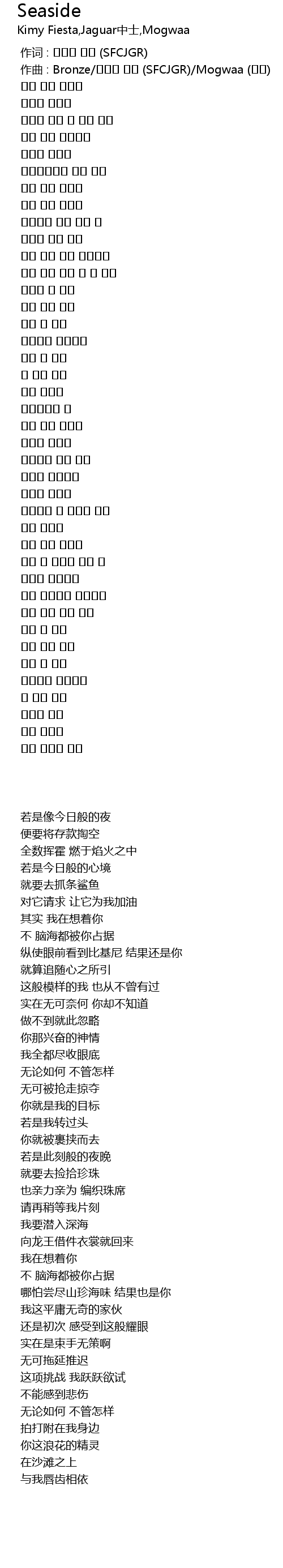 | [00:01.000] | zuò qǔ : Bronze SFCJGR Mogwaa |