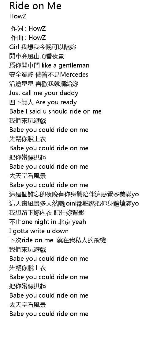 | [01:27.31] | xià cì ride on me jiù zài wǒ sī rén de fēi jī |