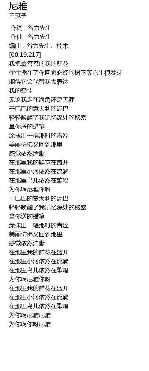 | [03:58.960] | 为你啊你呀尼雅 |