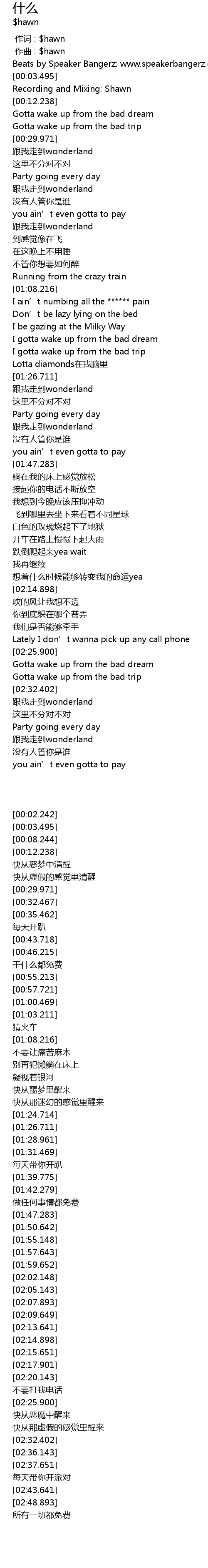 | [00:00.000] | 作词 : $hawn |
