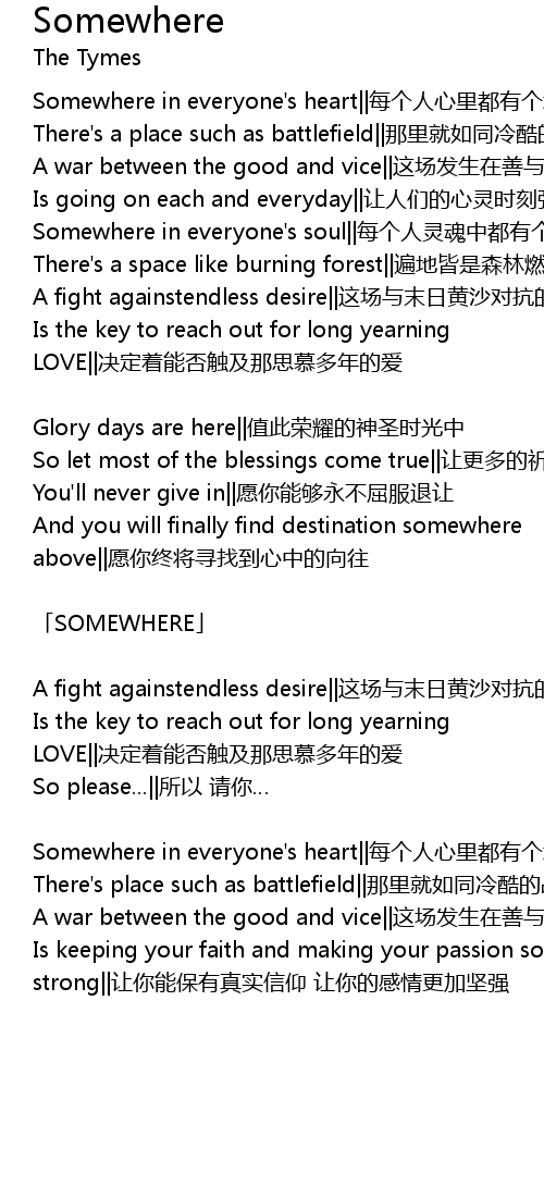 | Somewhere in everyone's heart||每个人心里都有个地方 | |
