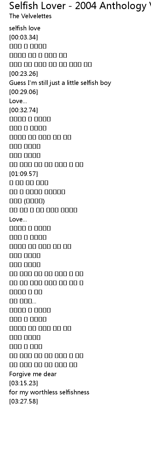 | [00:01.34] | selfish love |