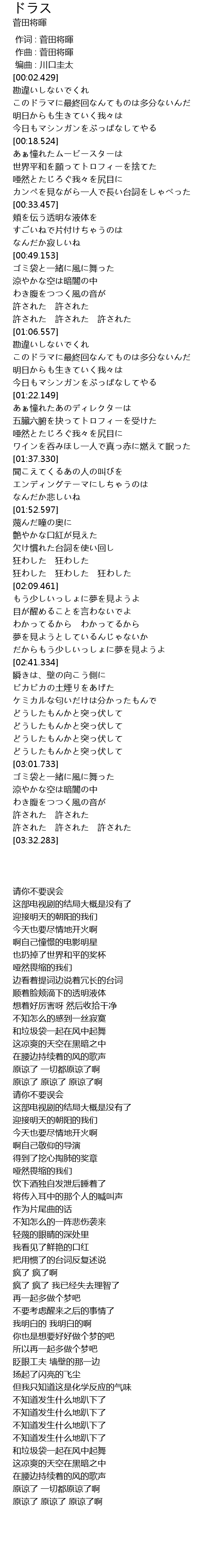 | [00:00.000] | 作词 : 菅田将暉 |