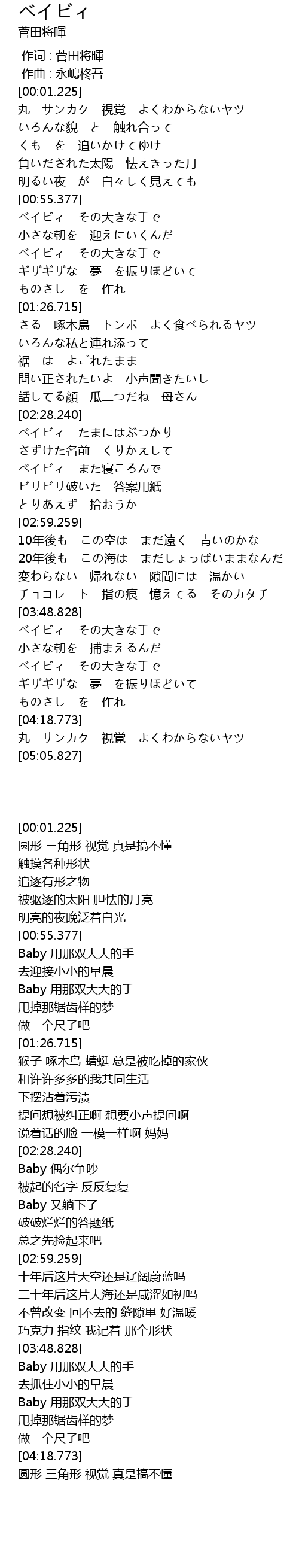 | [02:42.451] | ベイビィ また寝ころんで |