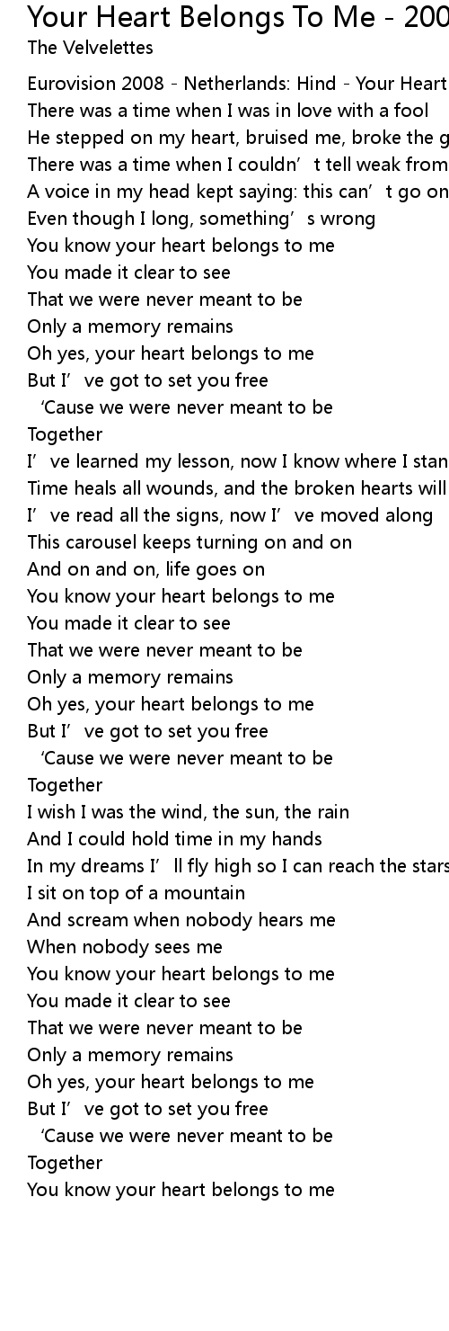 | [00:50.68] | Oh yes, your heart belongs to me |