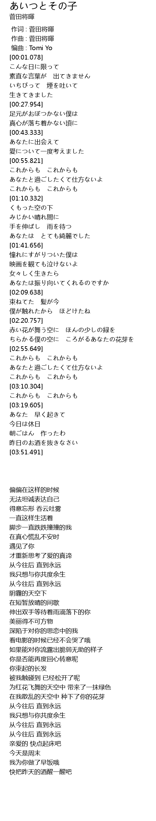 | [00:00.359] | 作曲 : 菅田将暉 |