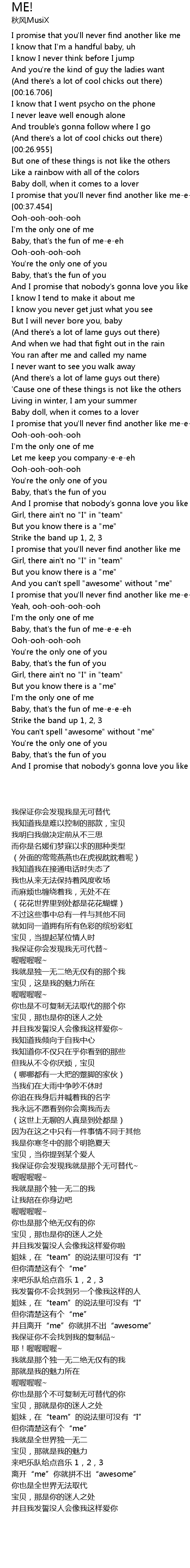 | [01:30.457] | I promise that you'll never find another like me-e-e-eh |