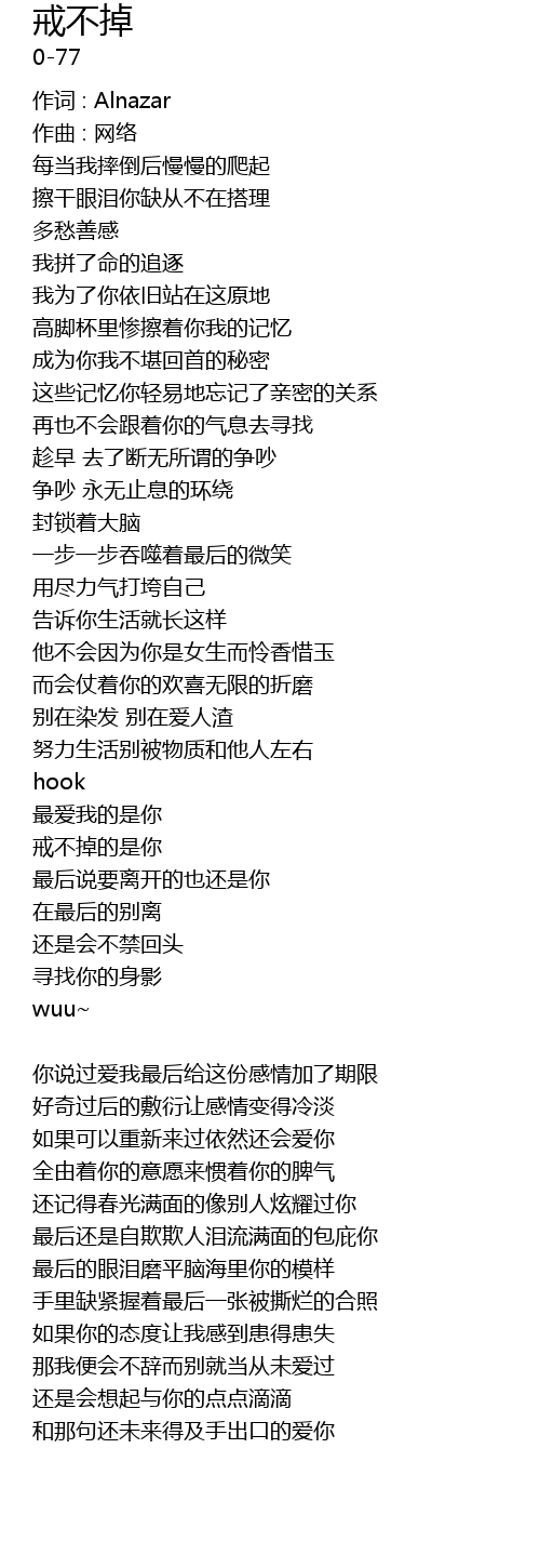 | cā gān yǎn lèi nǐ quē cóng bù zài dā lǐ | |