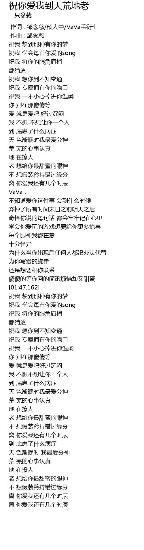 | [02:01.413] | zhù wǒ xiǎng nǐ dào bù zhī biàn tōng |