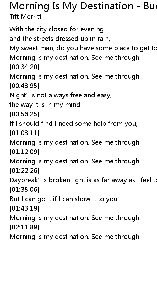 | [00:18.86] | My sweet man, do you have some place to get to? |