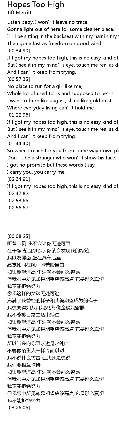 | [01:23.94] | If I got my hopes too high, this is no easy kind of life. |