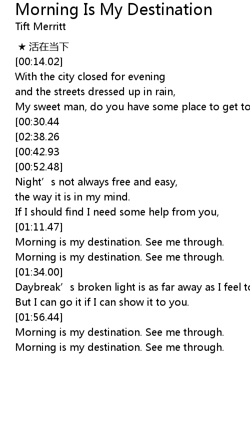 | [02:51.90][02:38.26][00:31.24] | Morning is my destination. See me through. |