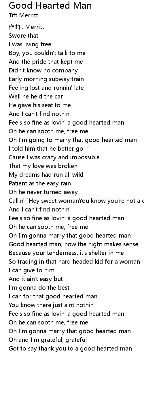 | Song | Good Hearted Man |