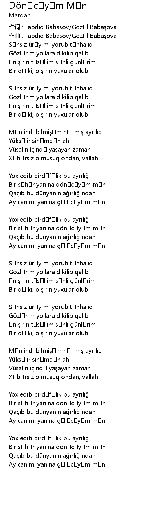 | 作词 : Tapdıq Babaşov/Gözəl Babaşova | |
