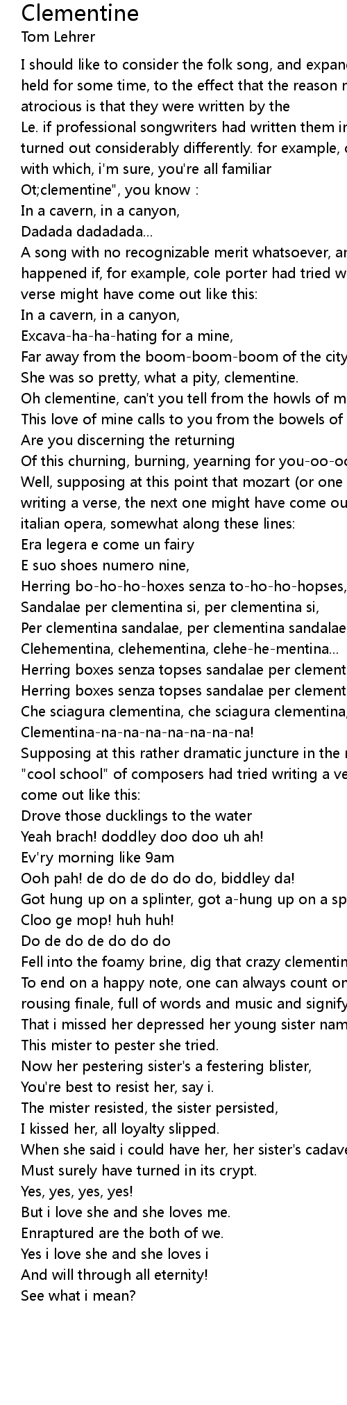 | Clehementina, clehementina, clehe-he-mentina... | |