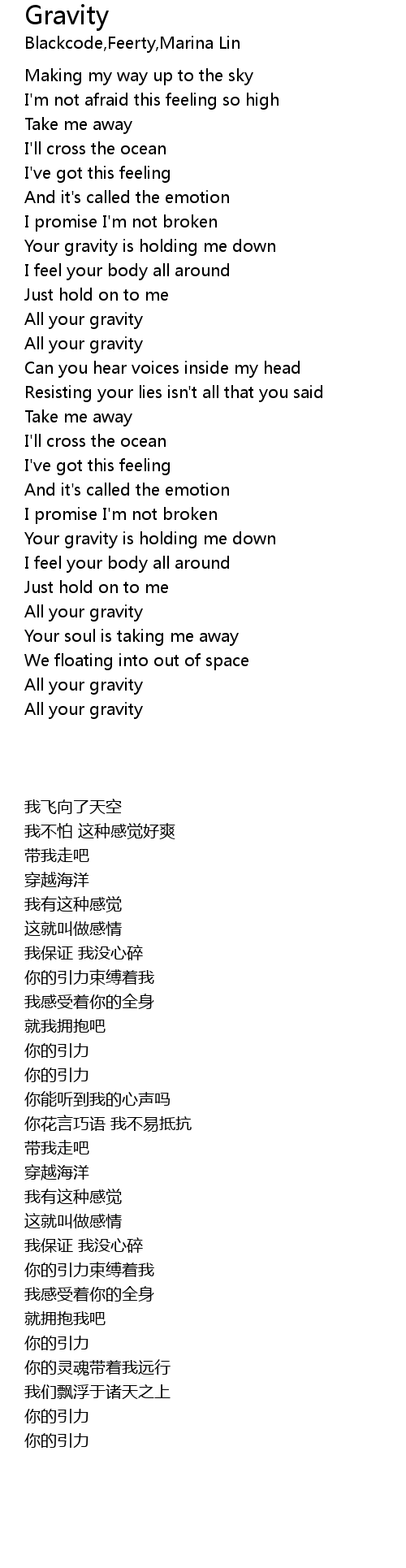 | [00:50.700] | All your gravity |
