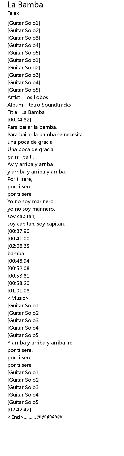 [02:09.85][02:06.65][00:44.03] Bamba, bamba,