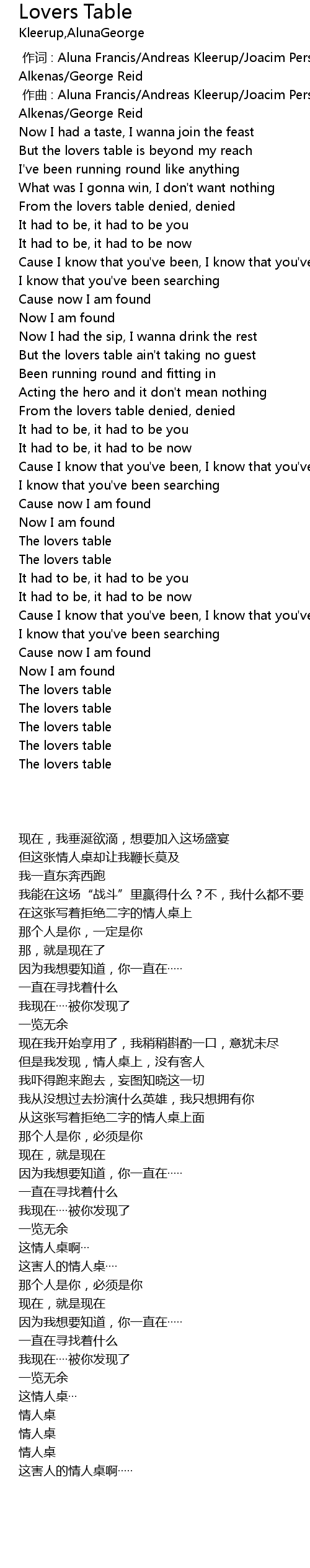 | [00:00.00] | zuò cí : Aluna Francis Andreas Kleerup Joacim Persson Johan Alkenas George Reid |
