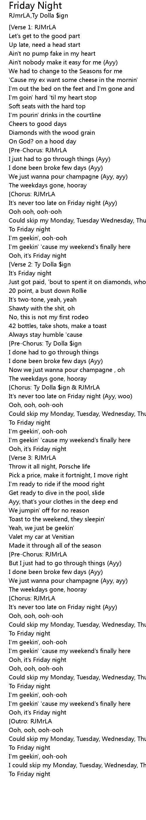 | [00:34.691] | It's never too late on Friday night (Ayy) |