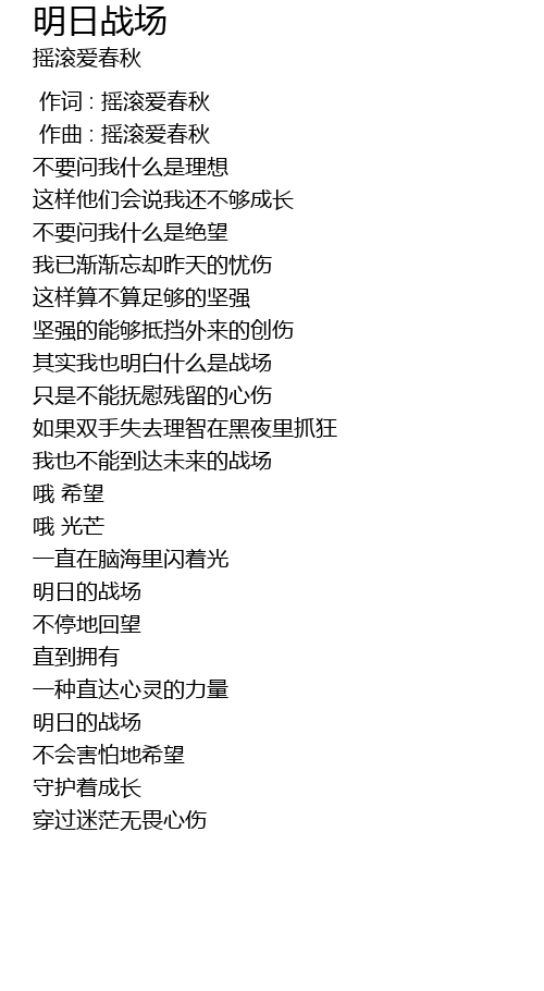 | [00:00.000] | 作词 : 摇滚爱春秋 |