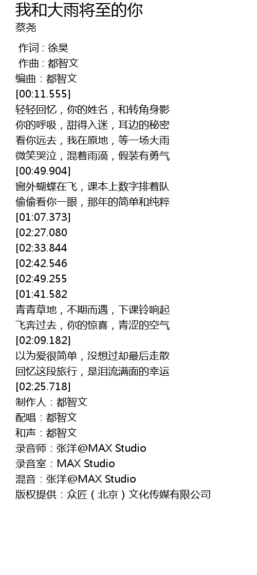 | [03:40.943] | 录音室:MAX Studio |